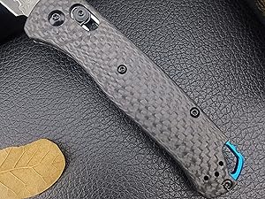 The handle is black and made of carbon fiber with a textured surface, which increases friction when holding it, making it comfortable and non-slip. The handle is also decorated with blue parts, which increases the color layering and visual highlights of the appearance.