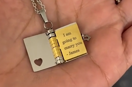 My wife Amelia cried when she opened this! We had our wedding vows engraved on the ‘cover’ and our first date written inside—now it’s like carrying a tiny love story around her neck. The quality is amazing too—stainless steel feels solid, no green skin after weeks. Perfect anniversary gift, 10/10!