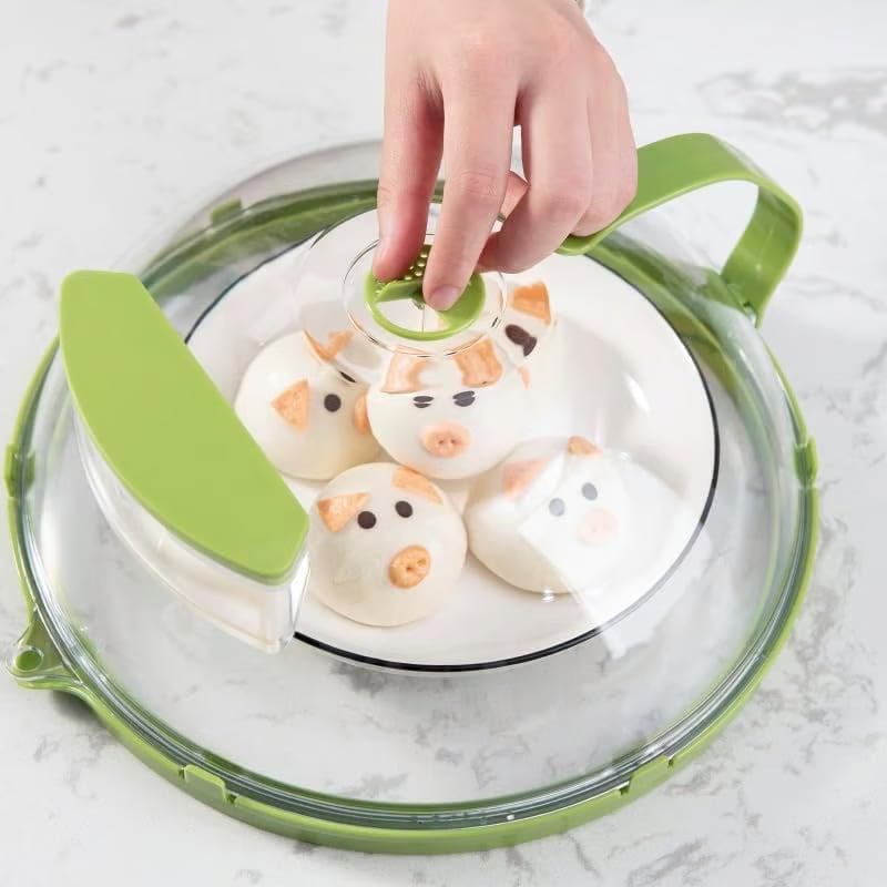 Made from durable, high-temperature-resistant PC material, this microwave cover is BPA-free and built to last. Its upgraded insulated handle protects your hands from burns, making lifting safe and effortless even after heating.