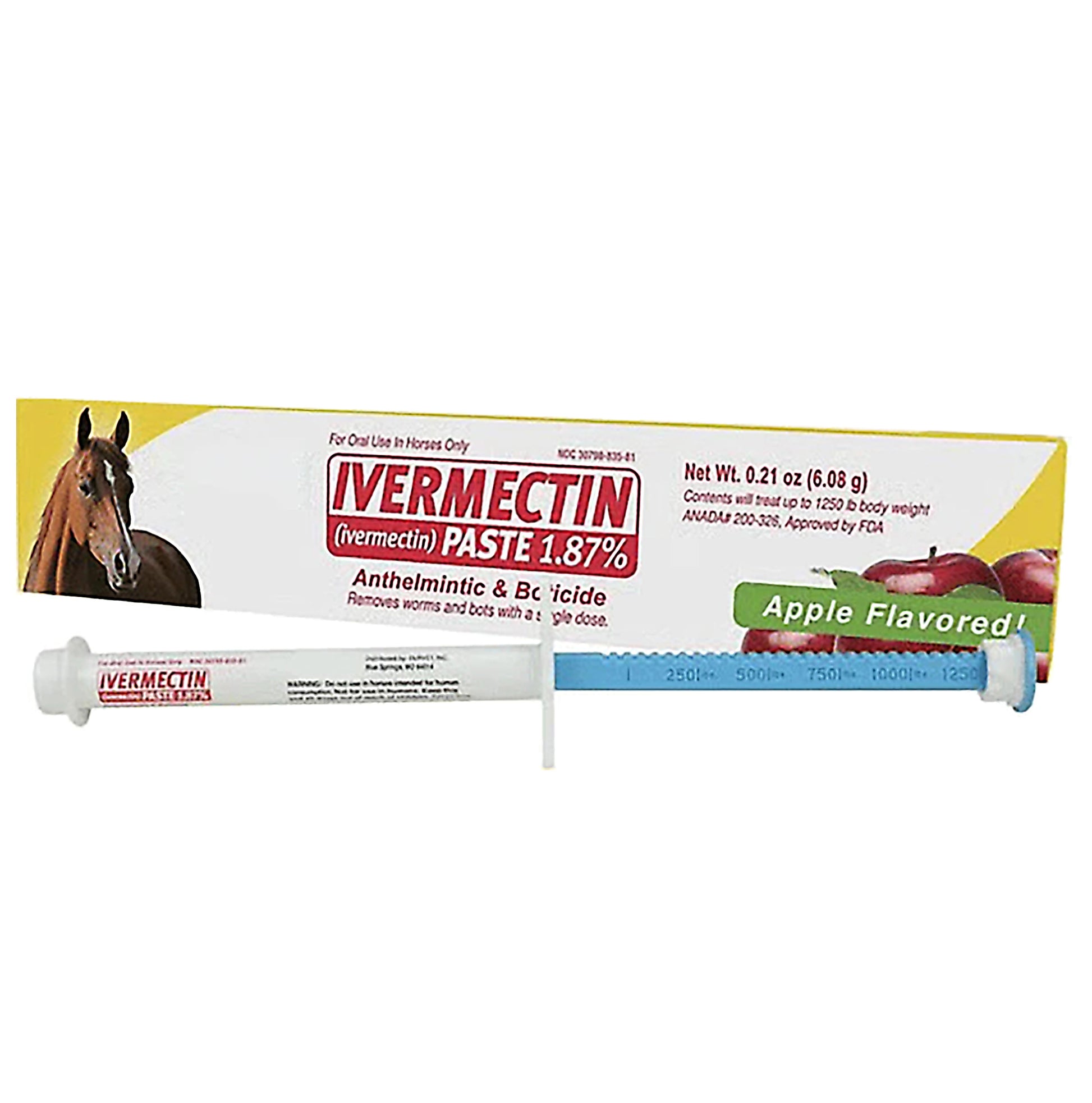 Apple-flavored Horse paste, Each 6.08 gram tube contains 1.87% ivermectin.