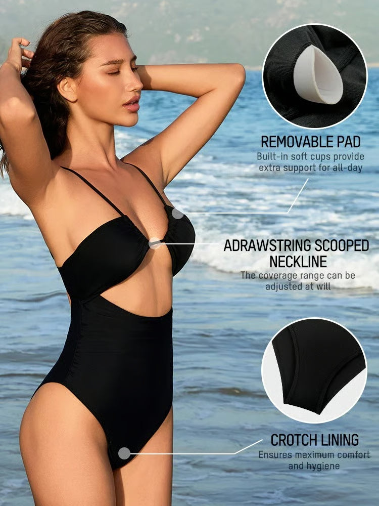 Women One Piece Swimsuit cut-out tummy control one piece swimsuit are made from lightweight, high stretch, quick drying fabric for comfort and durability. Removable pads provide support and stabilizing hold.