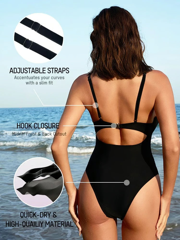 Women One Piece Swimsuit features a stylish cut-out design that enhances your fashion sense while supporting your tummy and slimming your figure. Add a fresh look to your swimwear with confidence.