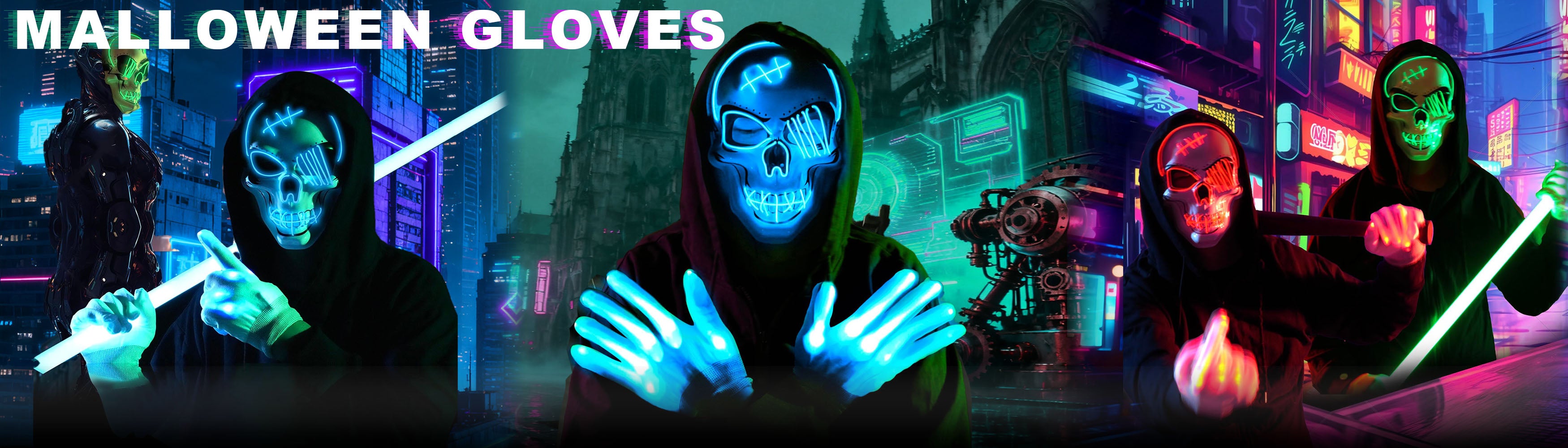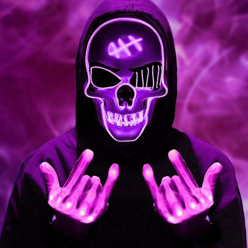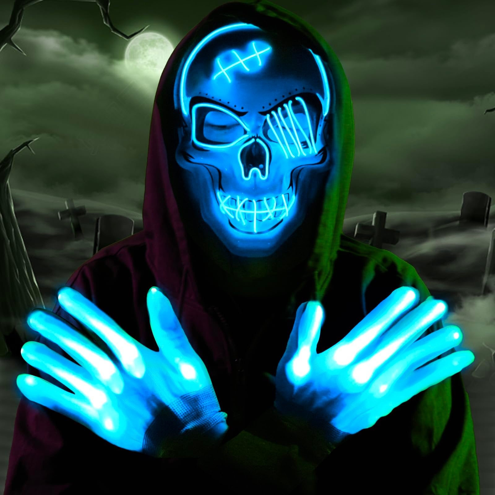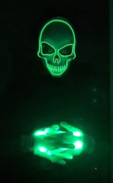 3 Light Modes to light up.The mask and the gloves is cool When it is light up, you wear Scary costumes, a Unique scary skull mask and glow hand to fit costumes and halloween atmosphere.