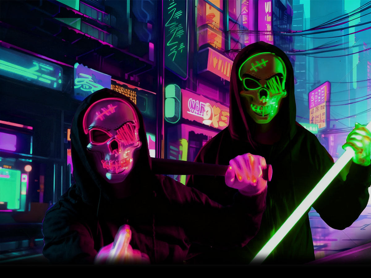 A scary face and pose will let you get more candy on halloween. The Mask Can be used on many occasions, such as Party, Rave Parties, Discos, Clubs, Halloween,Birthday, Festivals and other Events. I think you will feel cool and attracted to everyone.