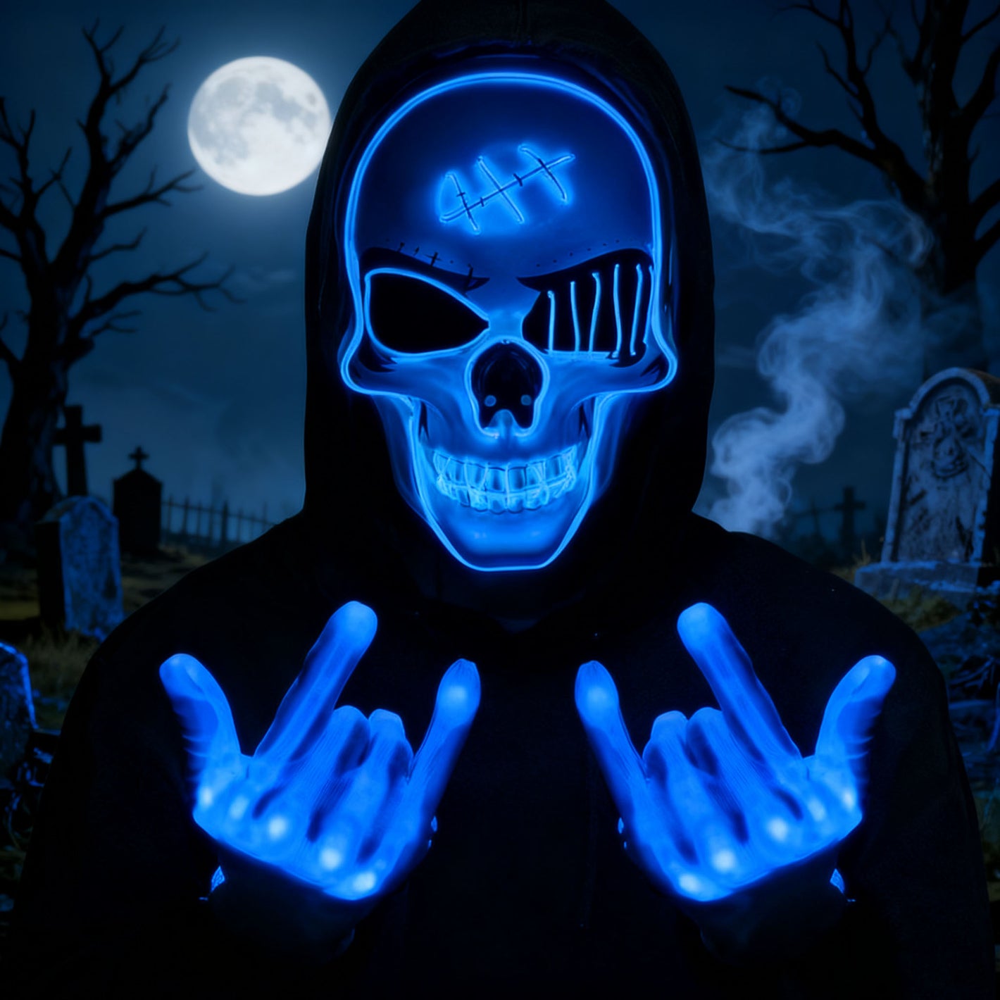 Light Up Halloween: The Ultimate Glow Skeleton Mask Set