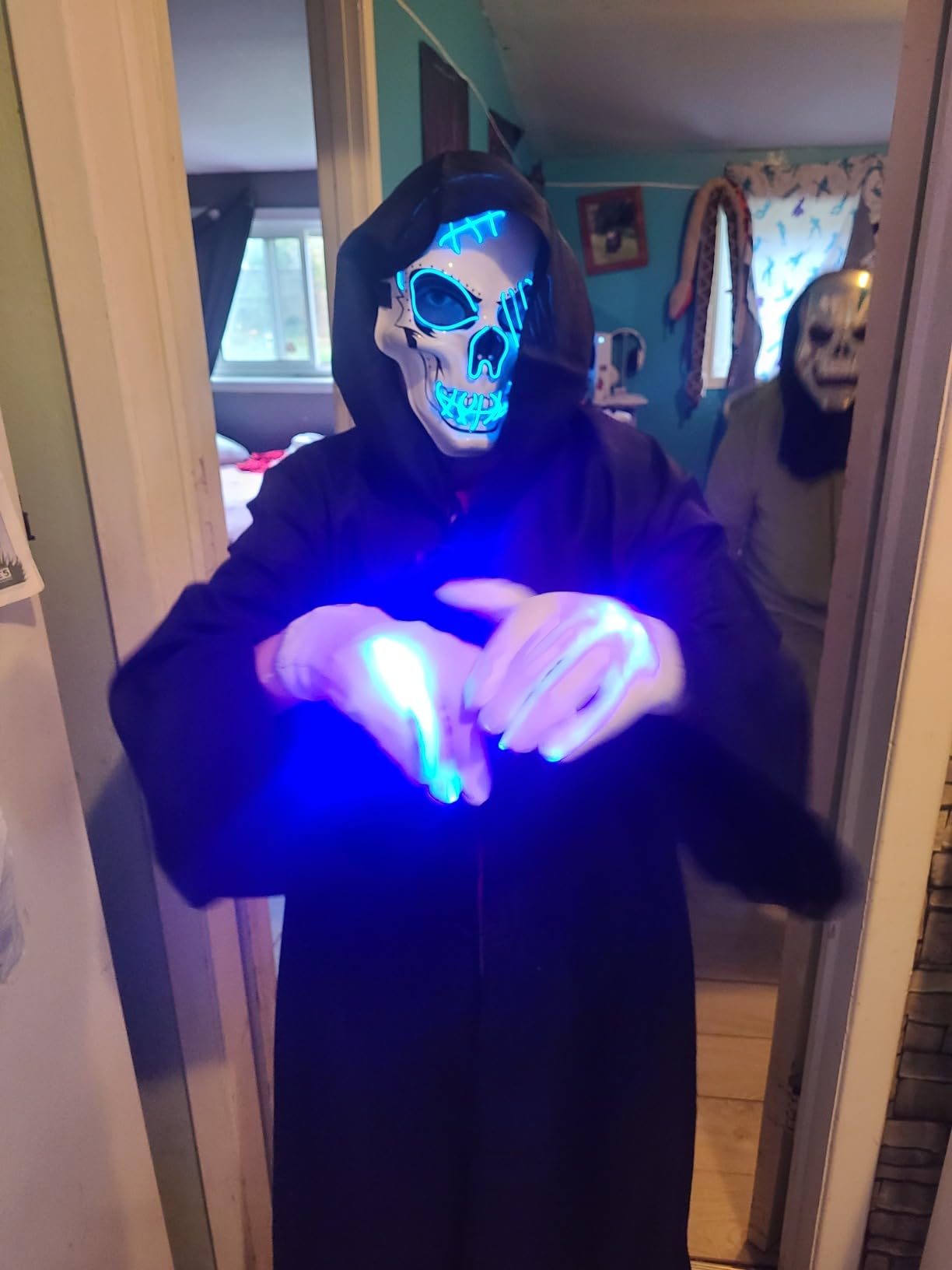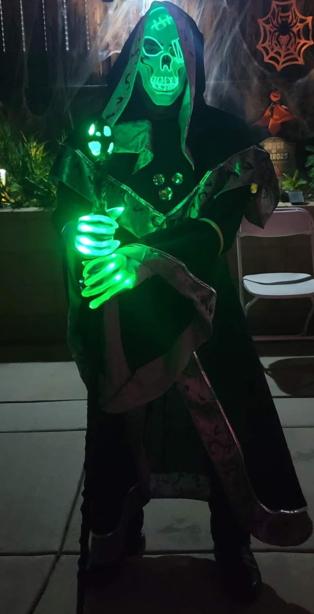 This mask and gloves has a Light up starter and will make sure you stand out of the crowd.Regardless of where you are you'll be getting tons of attention from others who are curious about your cosplay.