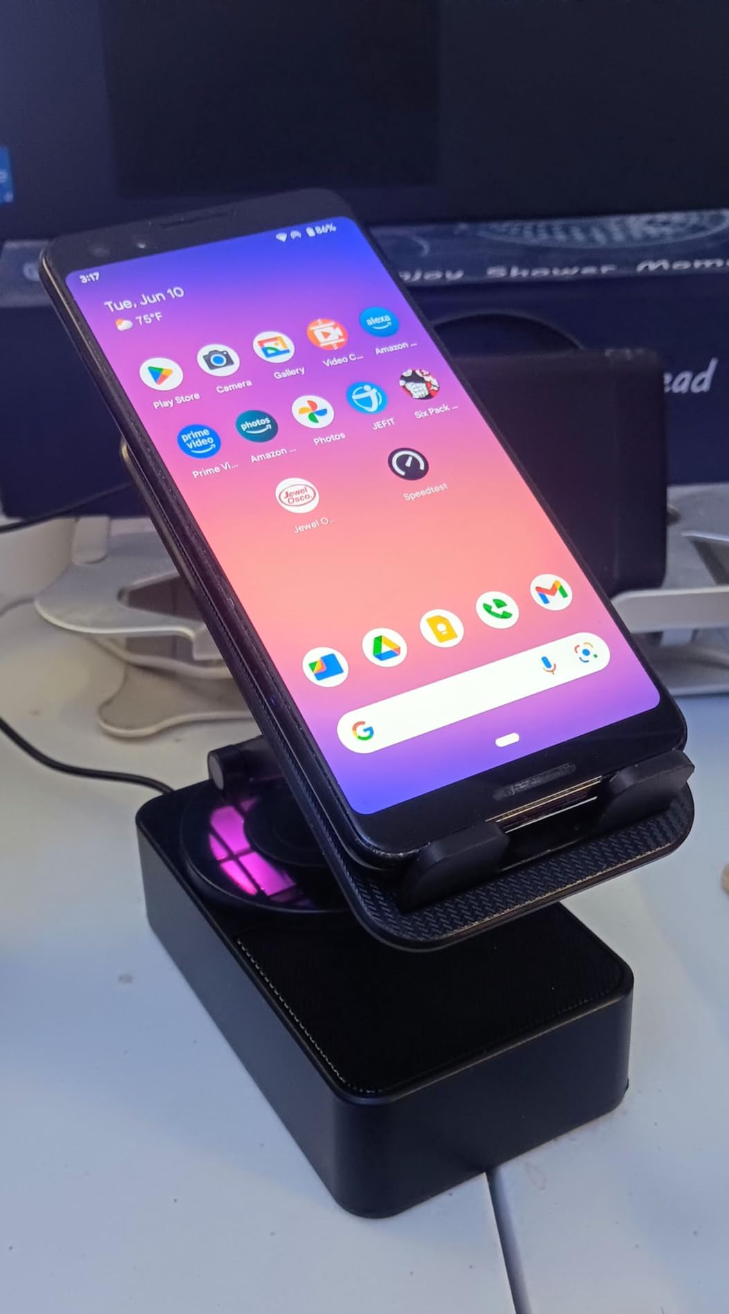 I'm really impressed with this phone stand. It's sleek and well - made. The 3 - in - 1 functionality is super convenient. I can use it to listen to music via Bluetooth while having my phone propped up for work. The adjustable stand allows me to find the perfect viewing position easily. It's a great addition to my workspace.