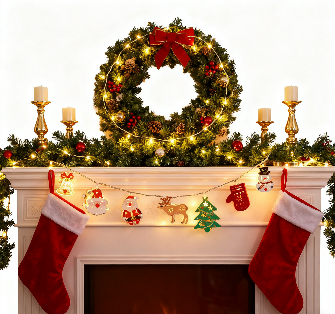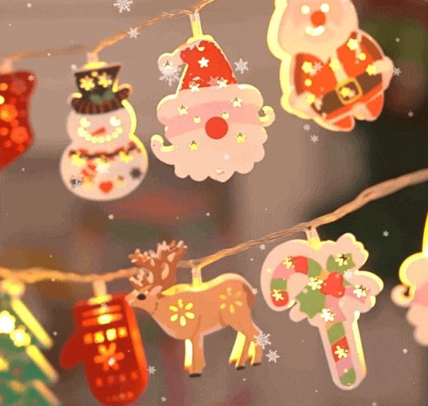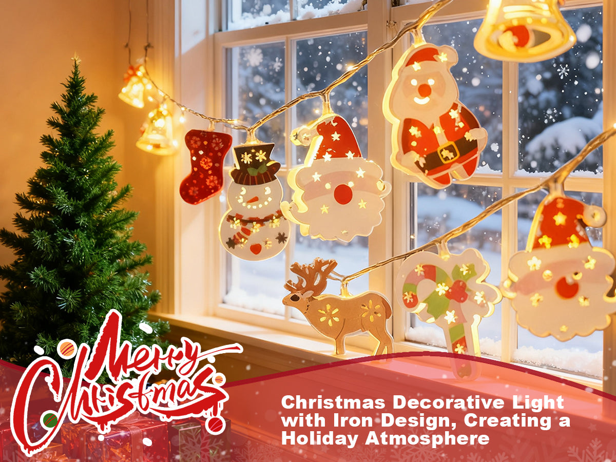 Light up your holiday season with this charming LED decorative light set! The set includes six classic Christmas designs—Santa Claus, snowman, candy cane, Christmas tree, stocking, and snowflake—all crafted with exquisite wrought iron workmanship. The warm white LED lights create a cozy atmosphere, transforming any space into a dreamy winter wonderland.