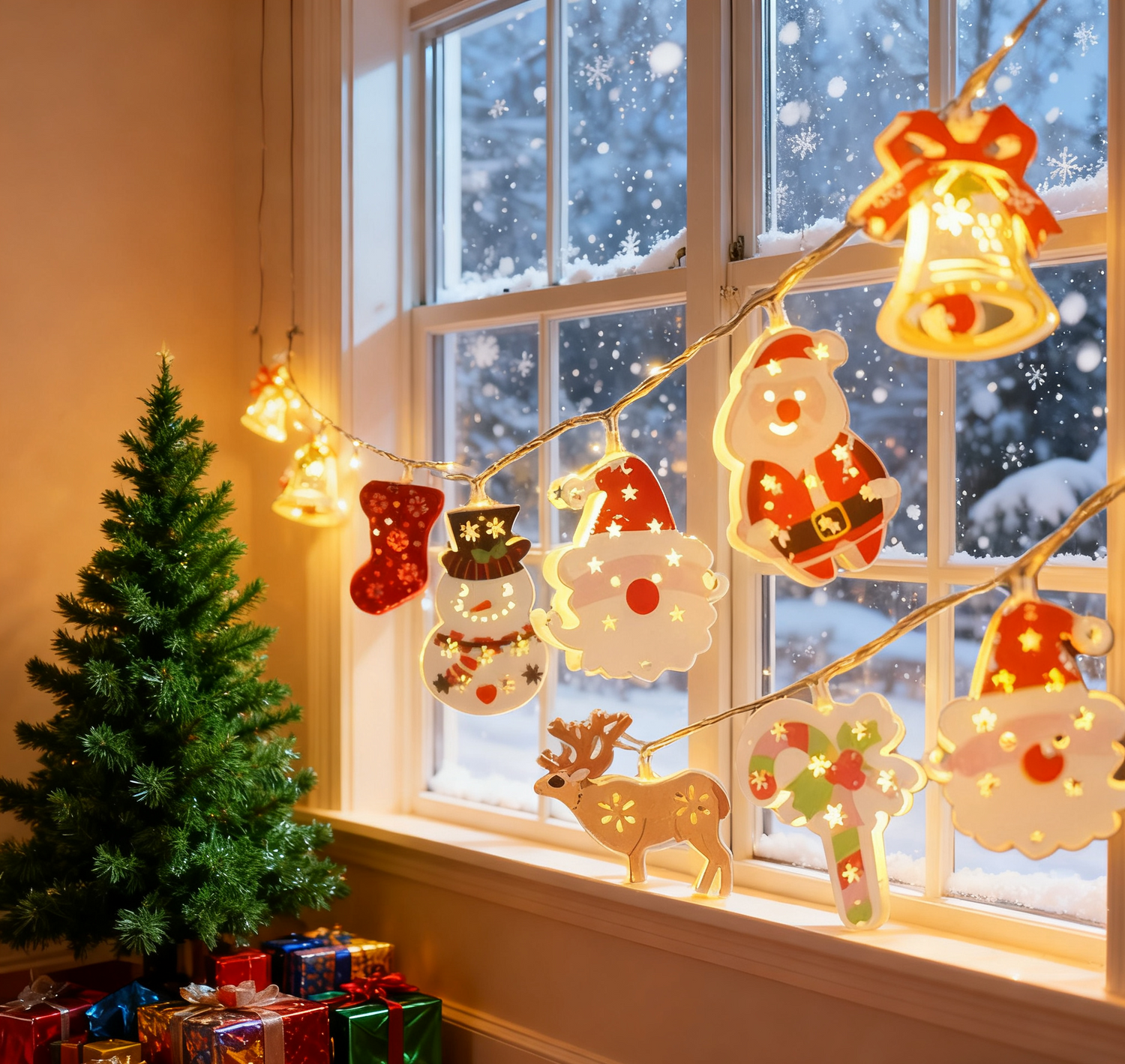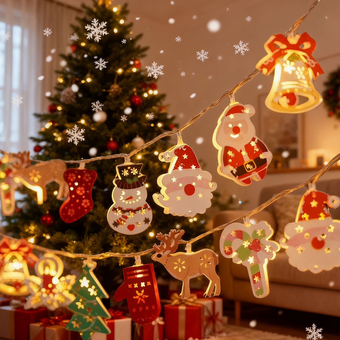 3m length with 20 LEDs in snowflake, snowman, and deer shapes—turns any space into a Christmas wonderland.