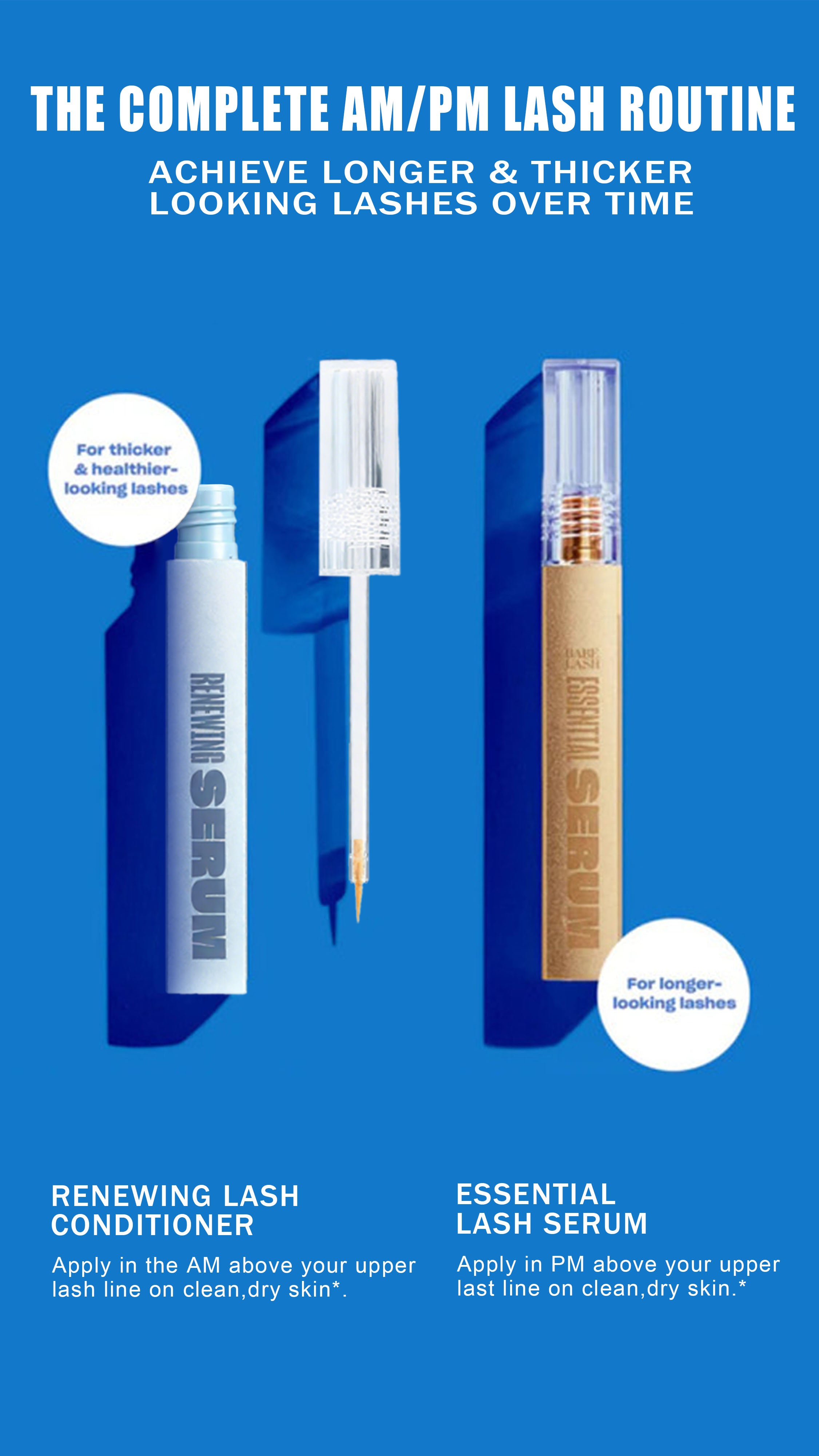 Tired of thin, fragile lashes? Unique AM/PM lash treatment set includes Essential Lash Serum and Enhancing Lash Conditioner, designed to nourish from root to tip.