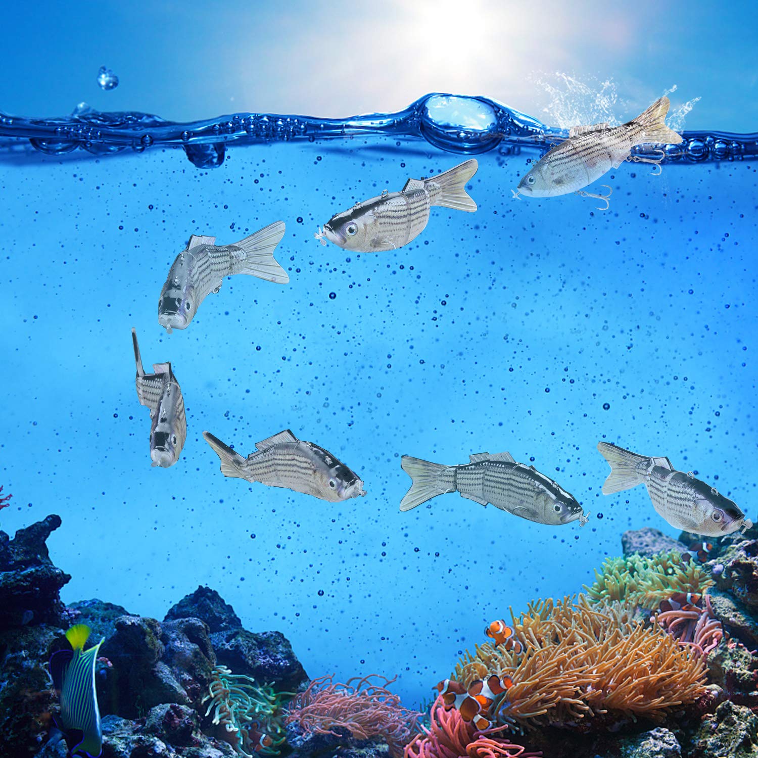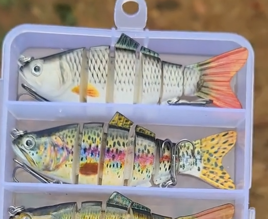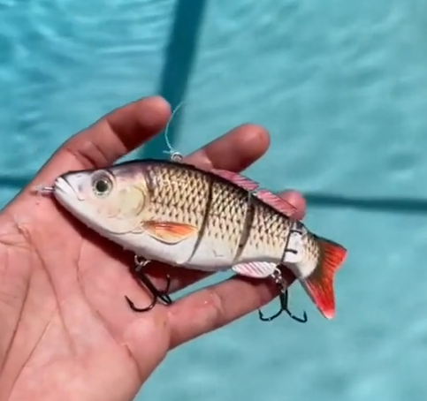 “Bass Lure: Lifelike multi - jointed swimmers. Fool bass with movements so real, they’ll strike like it’s lunch!”