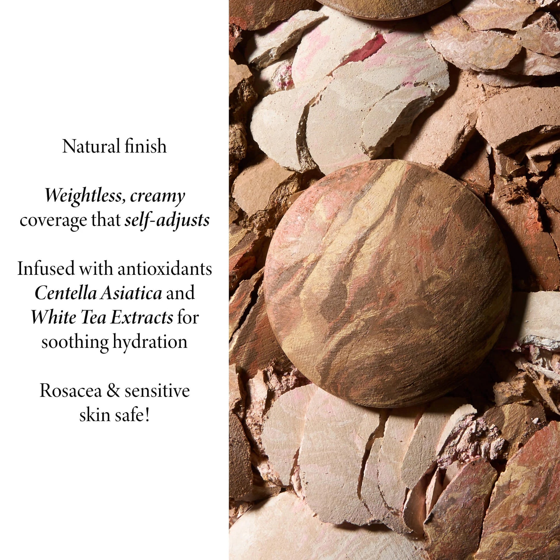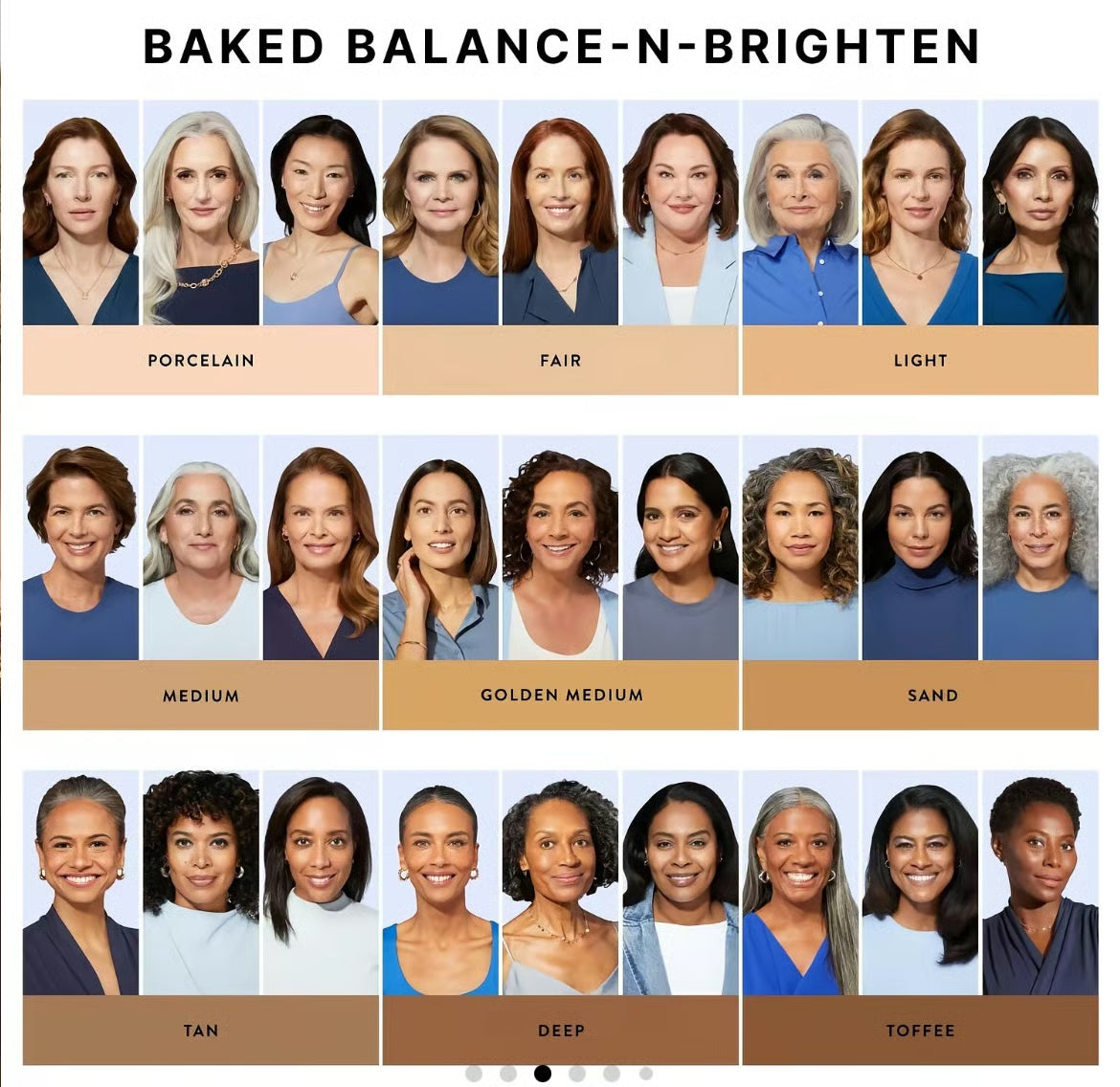 Remember: Our marbleized baked foundation contains multiple color-correcting shades that will self-adjust to your skin tone as you blend. Whether you choose a shade slightly lighter or darker, most will find the match still works for you.