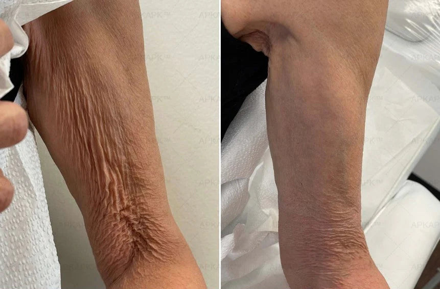 As people get older, their bodies experience the normal effects of aging. This development usually begins in their early twenties, as the production of collagen, which contributes to skin structure, slows down and the elasticity of elastin, responsible for skin resilience, reduces or deteriorates. These effects are particularly noticeable in women. Furthermore, the shedding of dead skin cells may become more sluggish, while the creation of new skin cells may gradually decrease, resulting in the formation of sagging and wrinkles across the body's skin tissue.