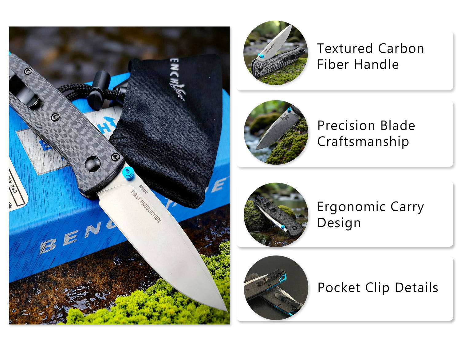 This knife merges featherlight carbon fiber, elite CPM-S90V steel (max edge retention + corrosion resistance), and Benchmade’s iconic AXIS lock for a sleek, high-performance pocket tool built to outlast and outperform.