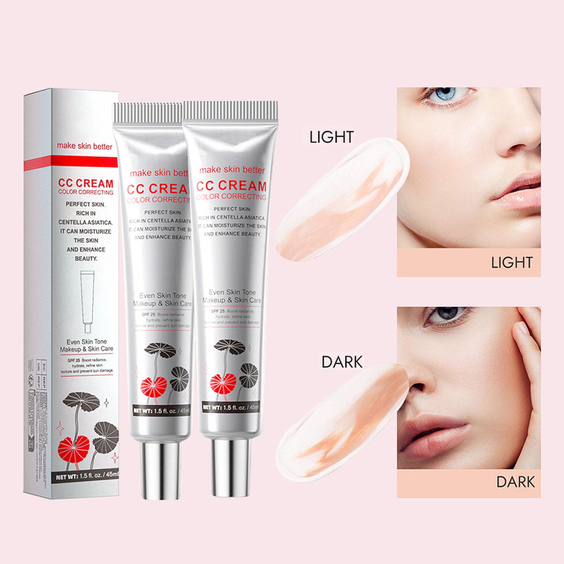 Color-Correcting + Skincare in One, No Residue! - Enriched with Centella Asiatica, our CC cream evens tone, hydrates, and shields with SPF 25—for a natural glow that lasts, without caking or mismatched shades!