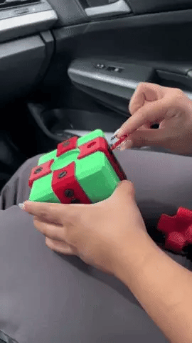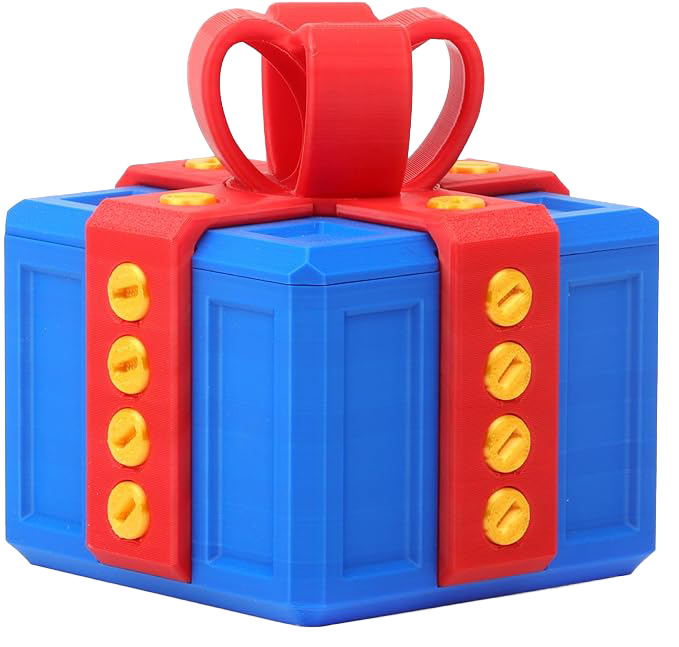 Features a unique 3D-printed gift box shape with 20 screws and a hidden key in the bow—blends whimsical design with prank-ready functionality, standing out as a one-of-a-kind gifting piece.