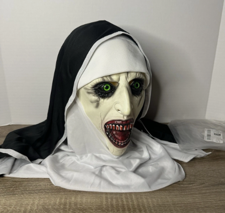 This isn’t just a mask—it’s a star-making horror piece with glowing eyes, a snarling demonic mouth, and a lifelike nun’s habit. Step into the spotlight at any event and watch everyone’s jaws drop (from fearandawe).
