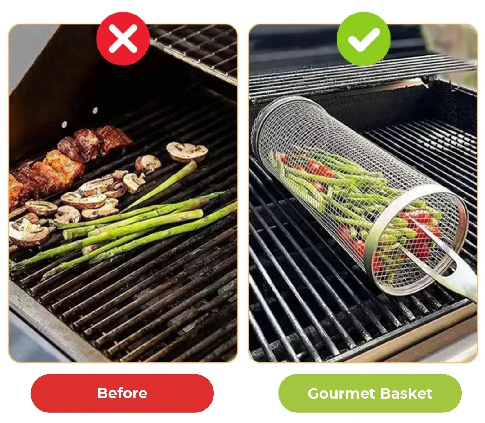 🍖 Revolutionize Your Grilling Game with this Rolling Grill Baskets! 🍖
