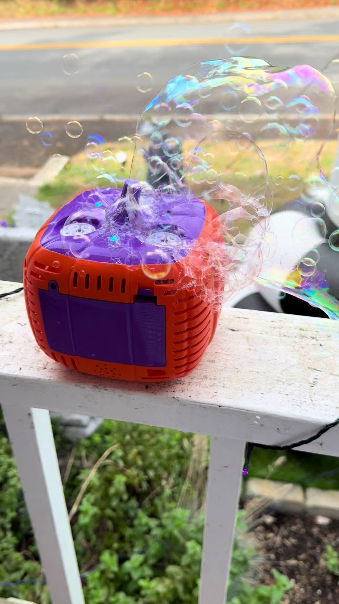 Watch 15 bubble holes erupt 18000+ bubbles/minute!Kids vanish in a magic bubble force field—perfect for creating spooky "fog" during trick-or-treating or backyard ghost parties on Halloween!