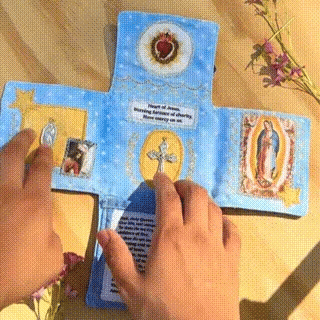 The devotional kit is a practical tool that invites you to keep prayer present in your daily life. It allows you to keep your favorite prayers close at hand, reflect with faith-inspired images, and maintain that intimate space with God, wherever you are.
