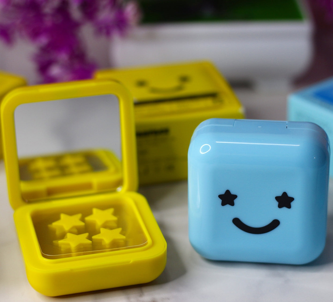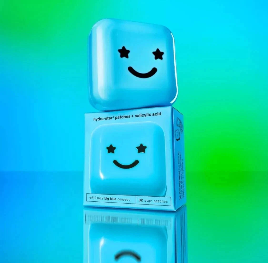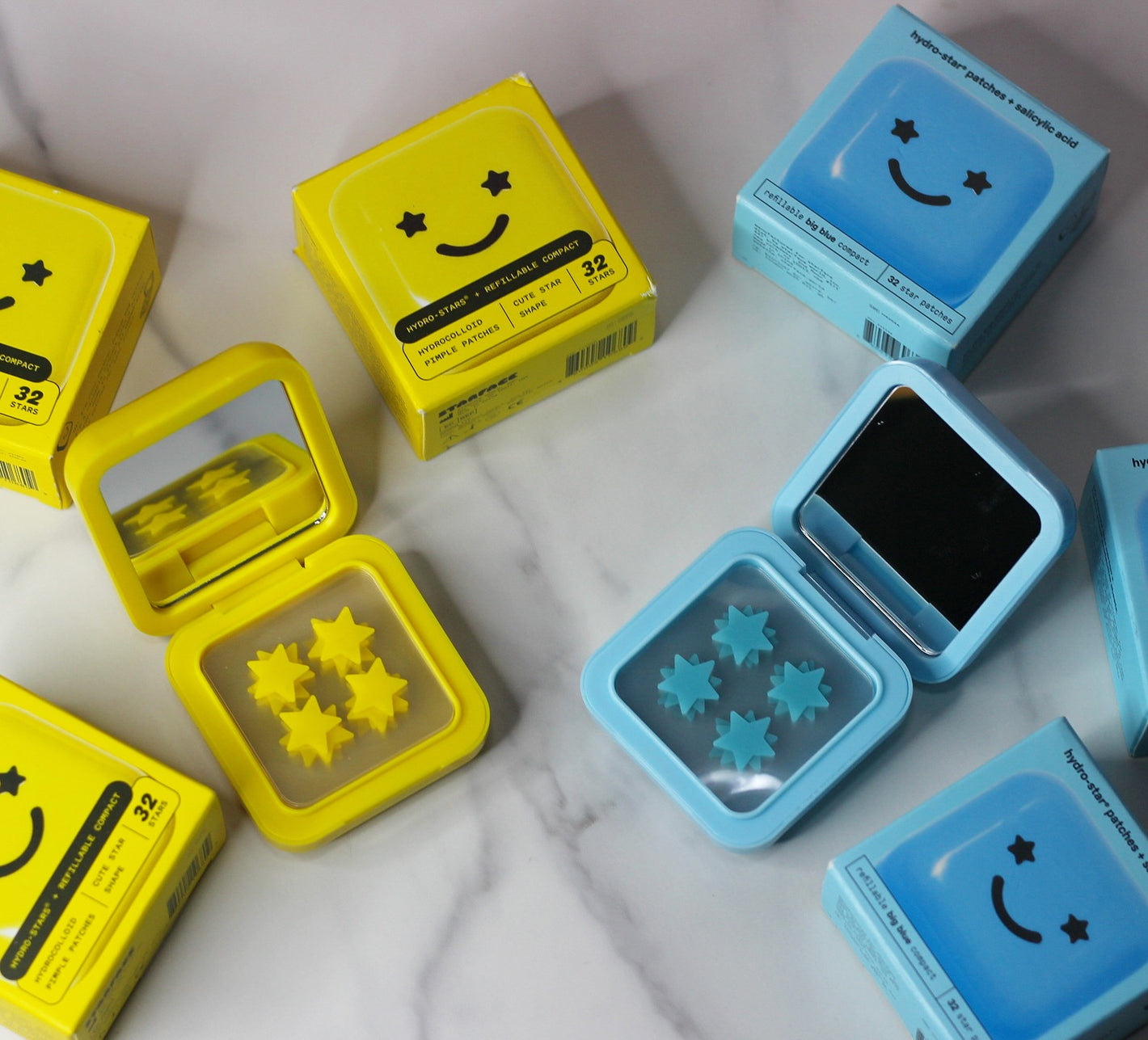 This blue compact is adorable! The star - shaped hydrocolloid patches inside are not only cute but also work great. With salicylic acid, they help reduce redness on my small blemishes. Plus, having 32 patches means I won't run out quickly. The built - in mirror is a handy bonus for on - the - go touch - ups.