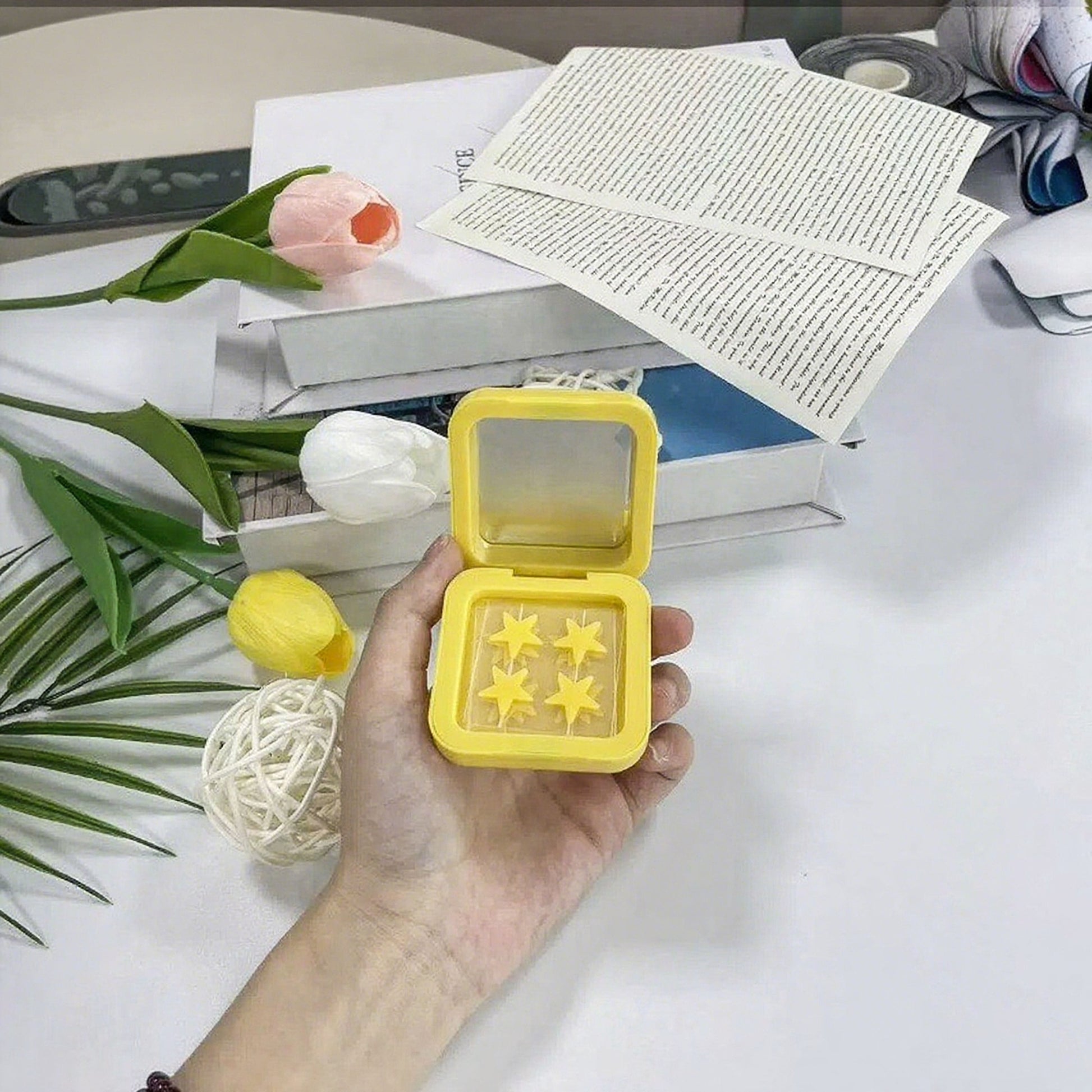 This compact holds essentials for skincare. There's a mirror for easy application, letting you flawlessly place the patches. Inside, 32 hydro - stars combined with salicylic acid form an award - winning formula, visibly shrinking spots. The refillable compact neatly stores all these hydro - star patches, keeping your skincare tools organized and ready for use.
