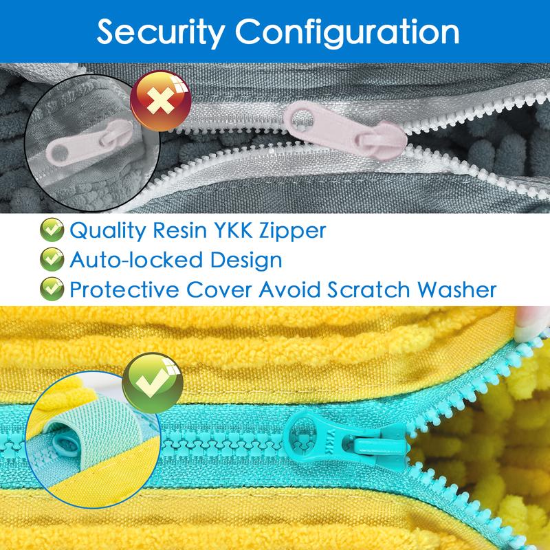 Not at all! The bag is made of premium polyester nylon and soft chenille microfibers, which are gentle on shoes (no fading, deformation, or water damage). Plus, the YKK anti-rust zipper and secure design protect the washing machine drum from scratches.
