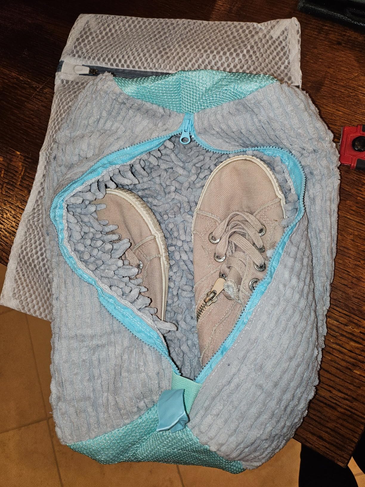 For optimal results, we recommend using a gentle or delicate cycle with mild detergent. This ensures thorough cleaning via the bag’s 360° bristles/fibers without harsh agitation that might harm shoes.