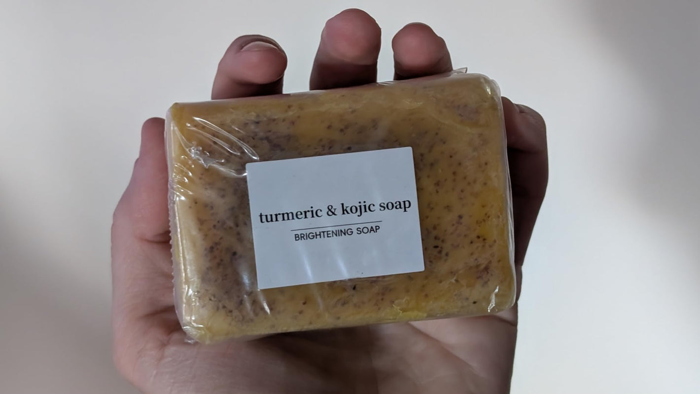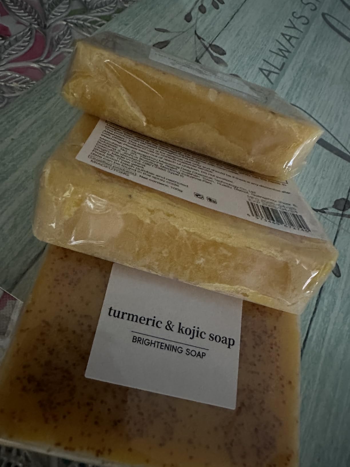 I like to use soap bars to wash my face and I've been using different versions of the Dove brand, which work fine. I decided to try this to see if I would like it compared to Dove. It is a very soft soap. Like Dove, it doesn't foam very much, which I don't like, but that just means there are less drying agents in it so I should be happy. There's just something psychological about foam though. I love foam. Anyway, it doesn't dry out my face, which is the point, and that's great. Are lemon, turmeric, and kojic acid beneficial for my skin? Time will tell I guess. The only thing I don't like are the little seed things in it. Whole turmeric? Not sure. I suppose they are there to give it authenticity, but there's no benefit or purpose, and there's not enough of them to serve as an exfoliant; they're just kind of annoying when they get embedded in my washcloth. All in all though, it's comparable to my usual Dove brand, so I'm happy with it.
