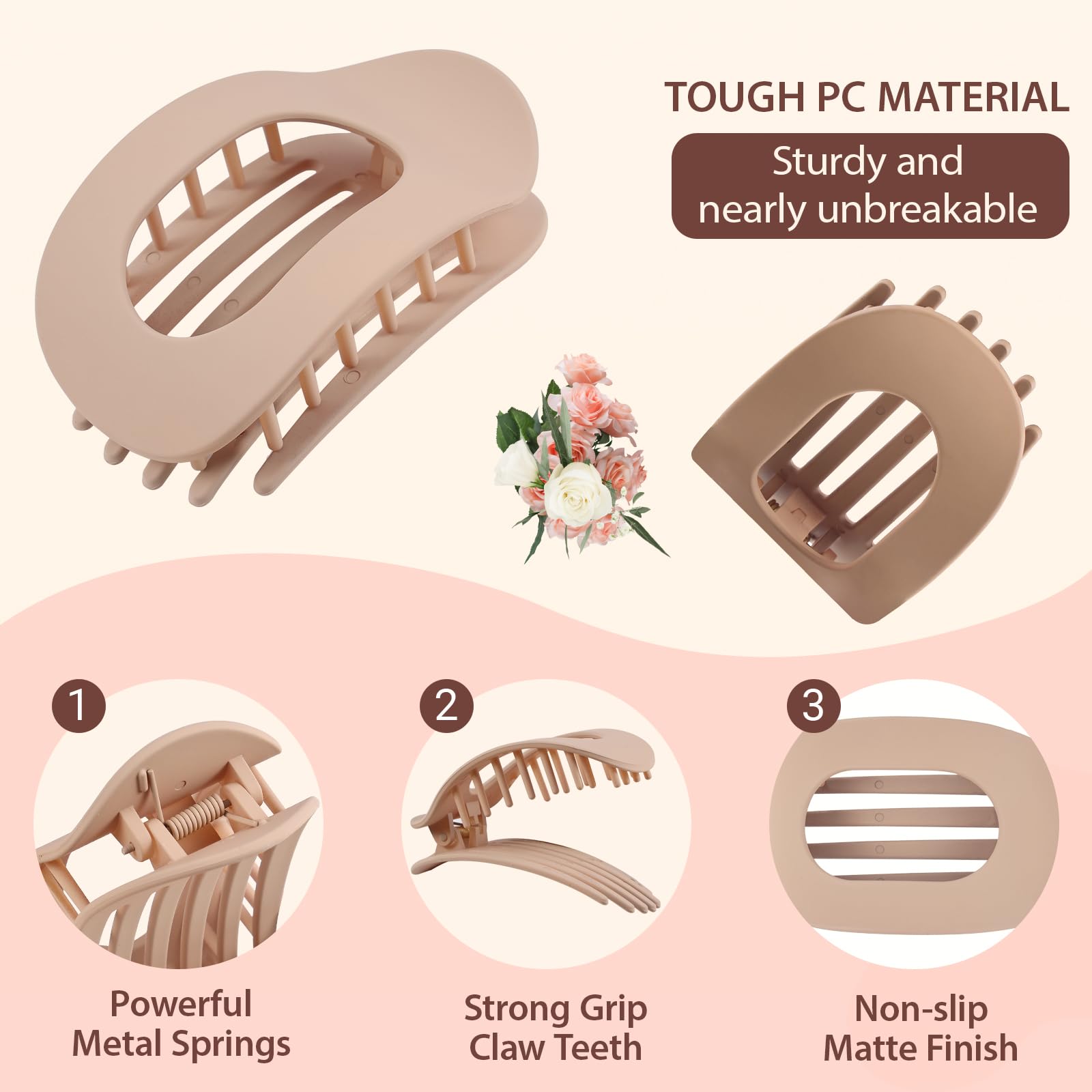 ⚓Durable Materials - Flat claw clips for women are made of high quality resin, lightweight and portable, no burden when wearing. Highly elastic spring makes the hair clips easy to open and hold your hair firmly. The flat claw clip will not fade or deform, long lasting and durable.