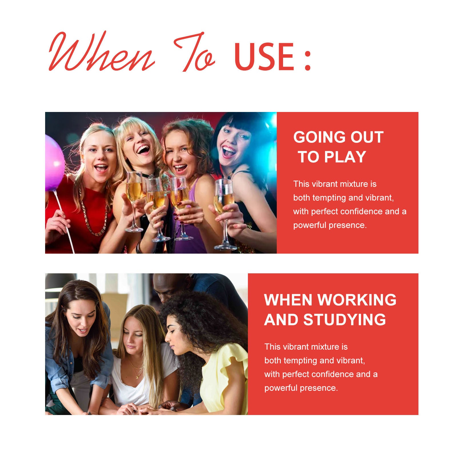 Apply to pulse points(wrists, neck, behind ears). The warmth amplifies fragrance/pheromones, exuding irresistible allure.