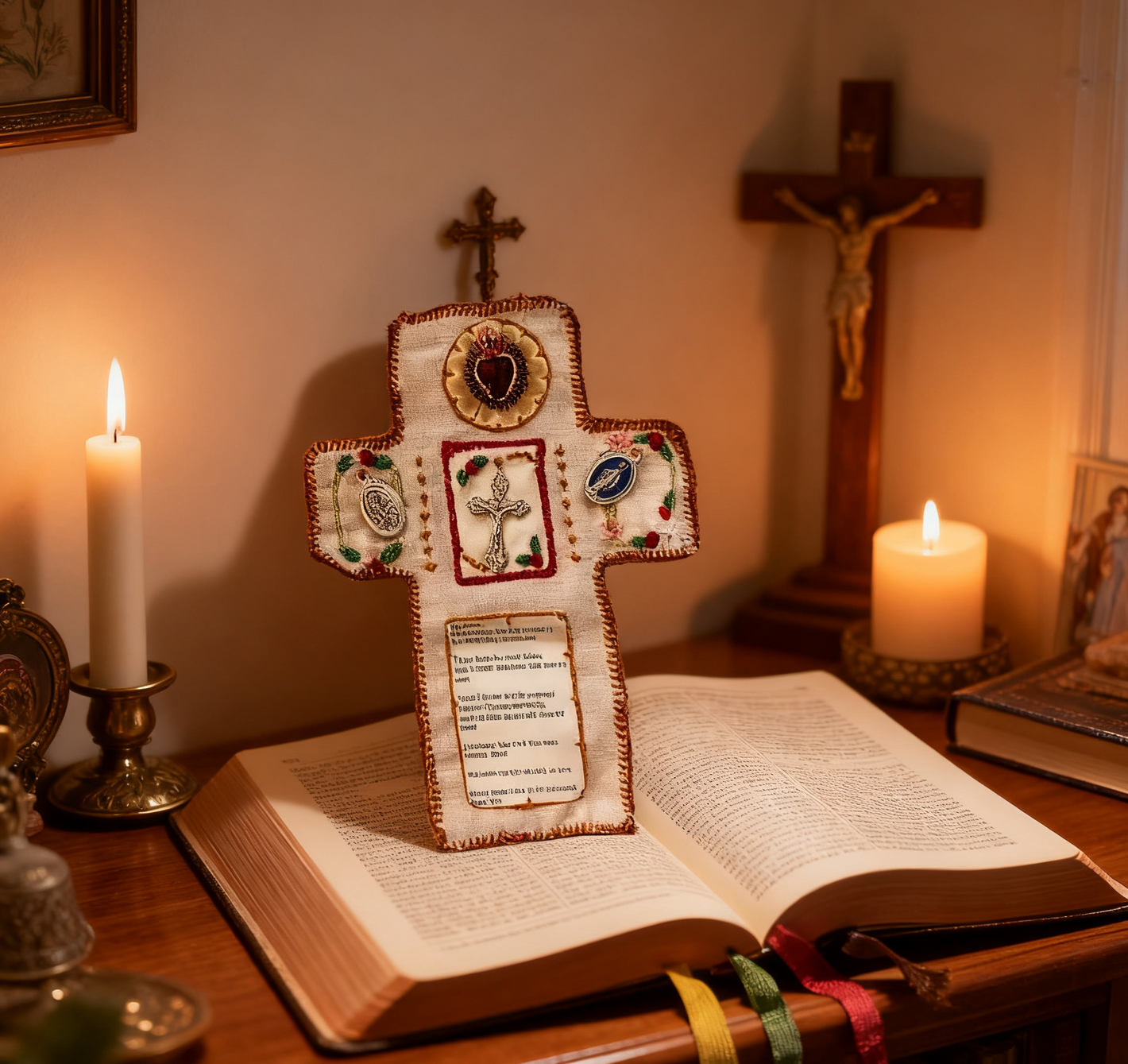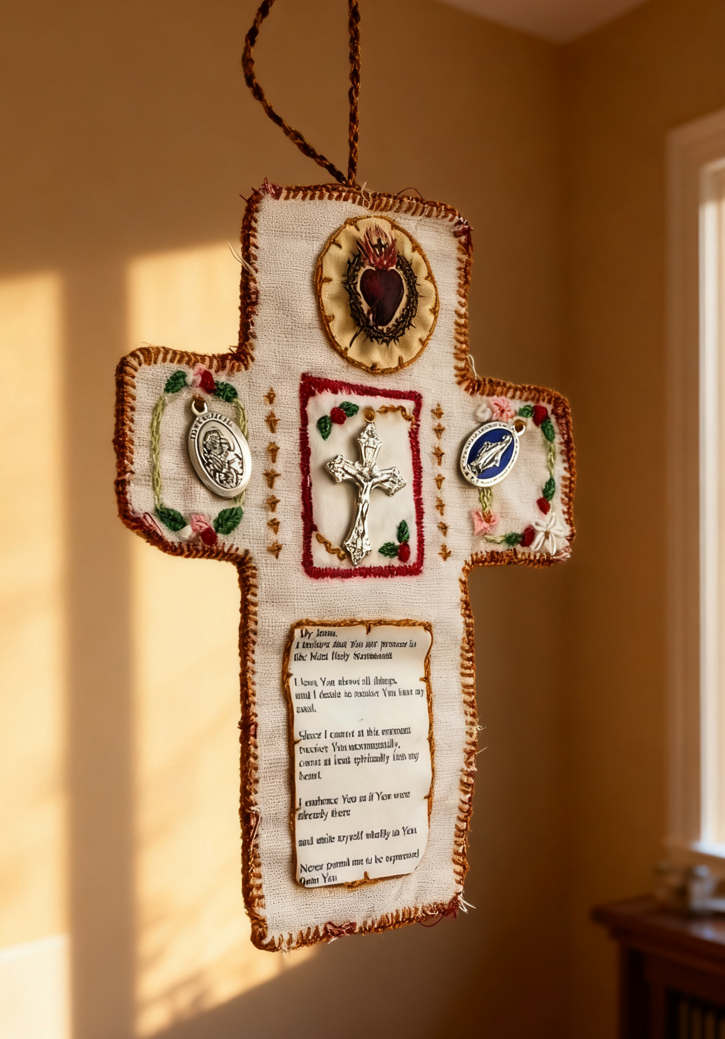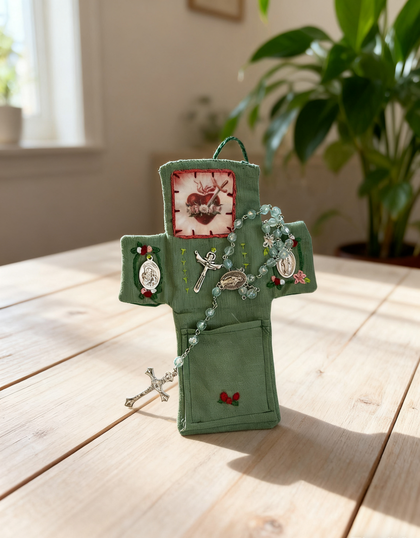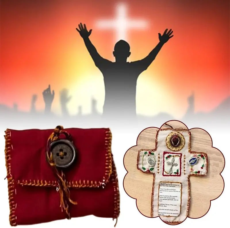 Whether commuting, traveling, or simply at home, this pocket shrine is your personal connection to prayer, offering comfort and guidance through its spiritual symbols, including a beautifully placed cross.