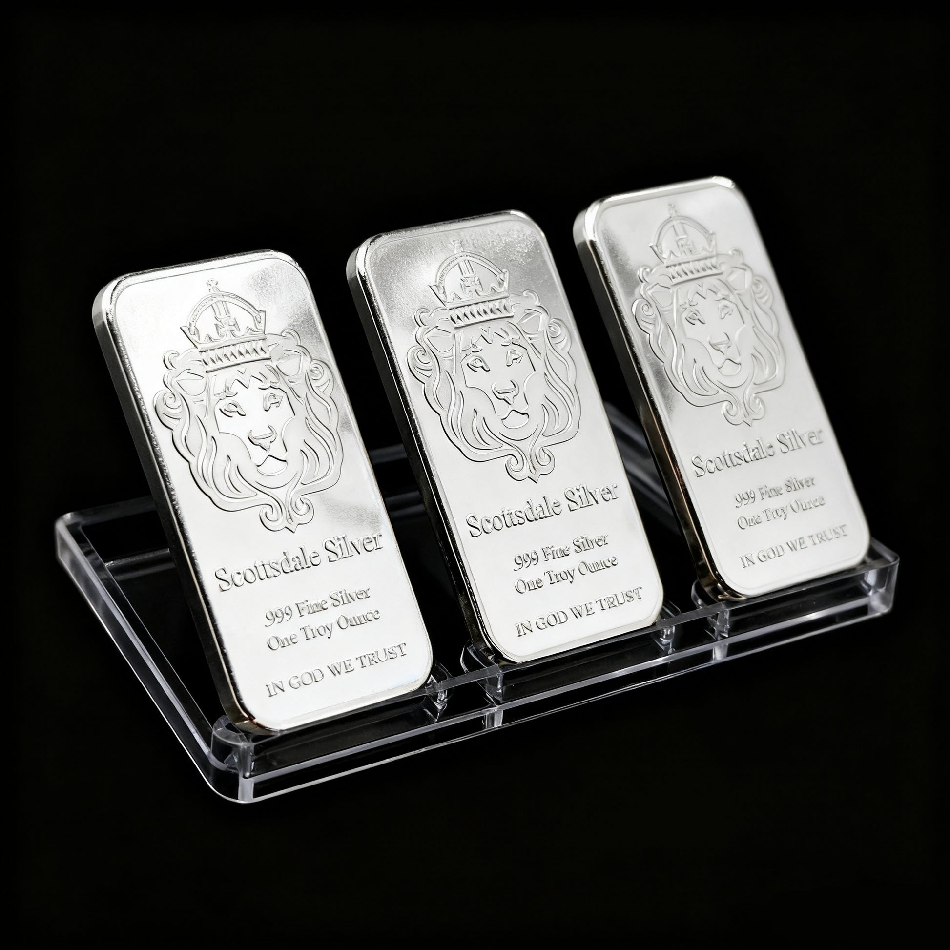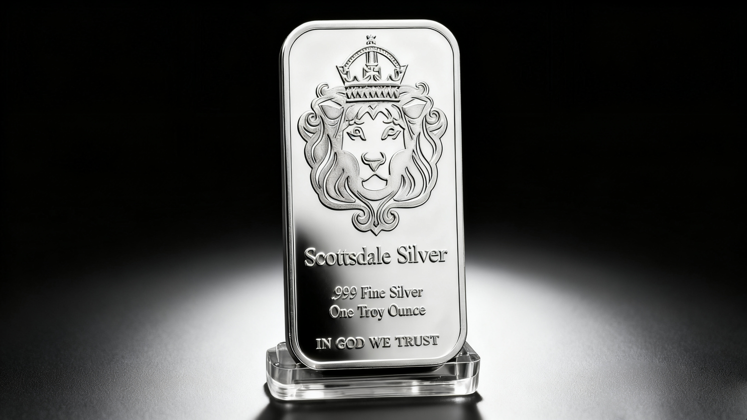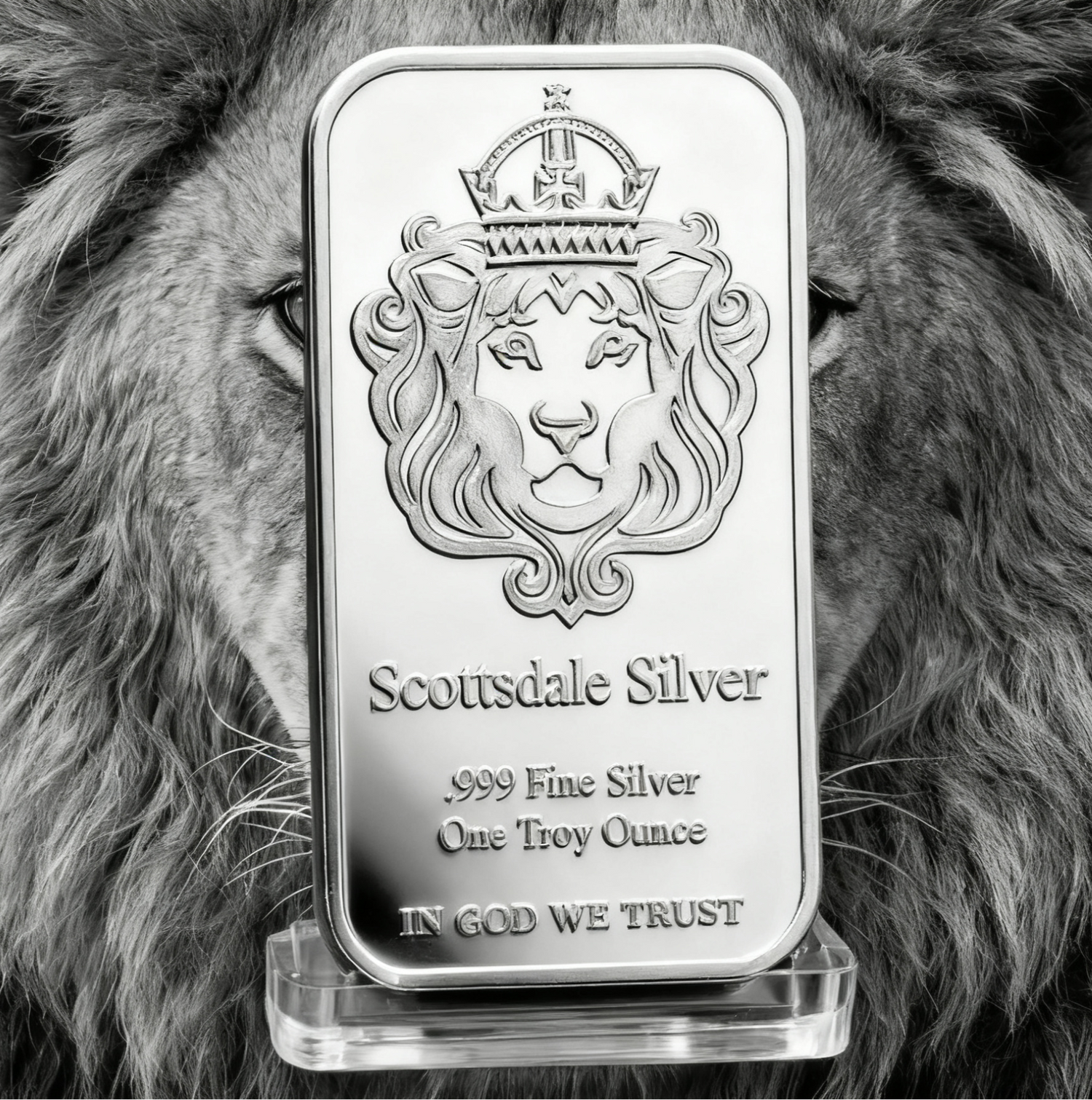 The crowned lion representsstrength, legacy, and trust—core values tied to Scottsdale Mint’s reputation and silver’s enduring value.