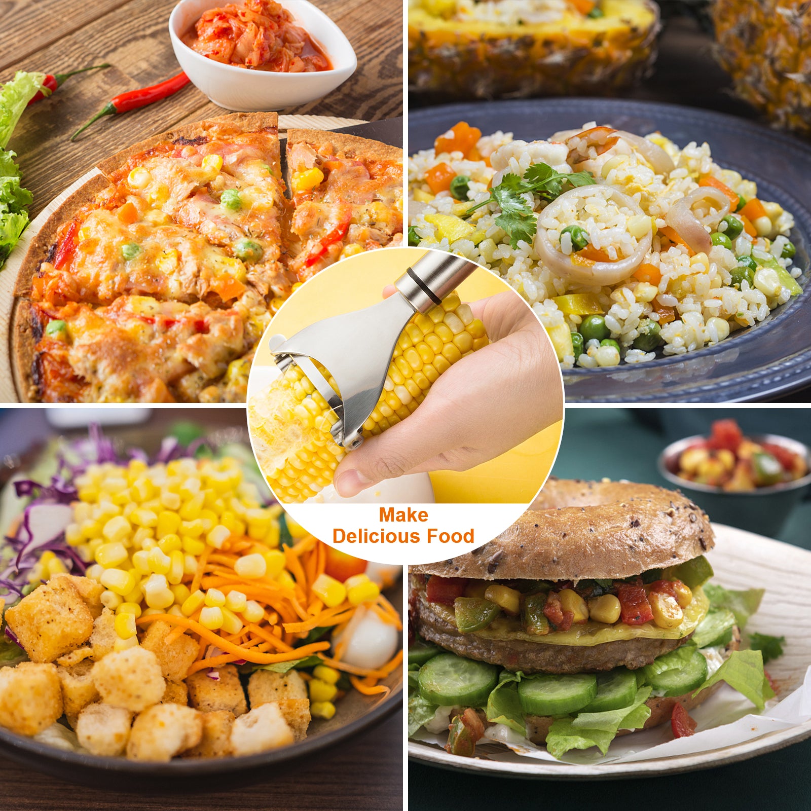 Stainless steel curved design conforms to the shape of the corn, making it easier to strip. The cob corn stripper tool is aligned with the core of the corn,remove corn from the cob in one quick pushing motion by hand.
