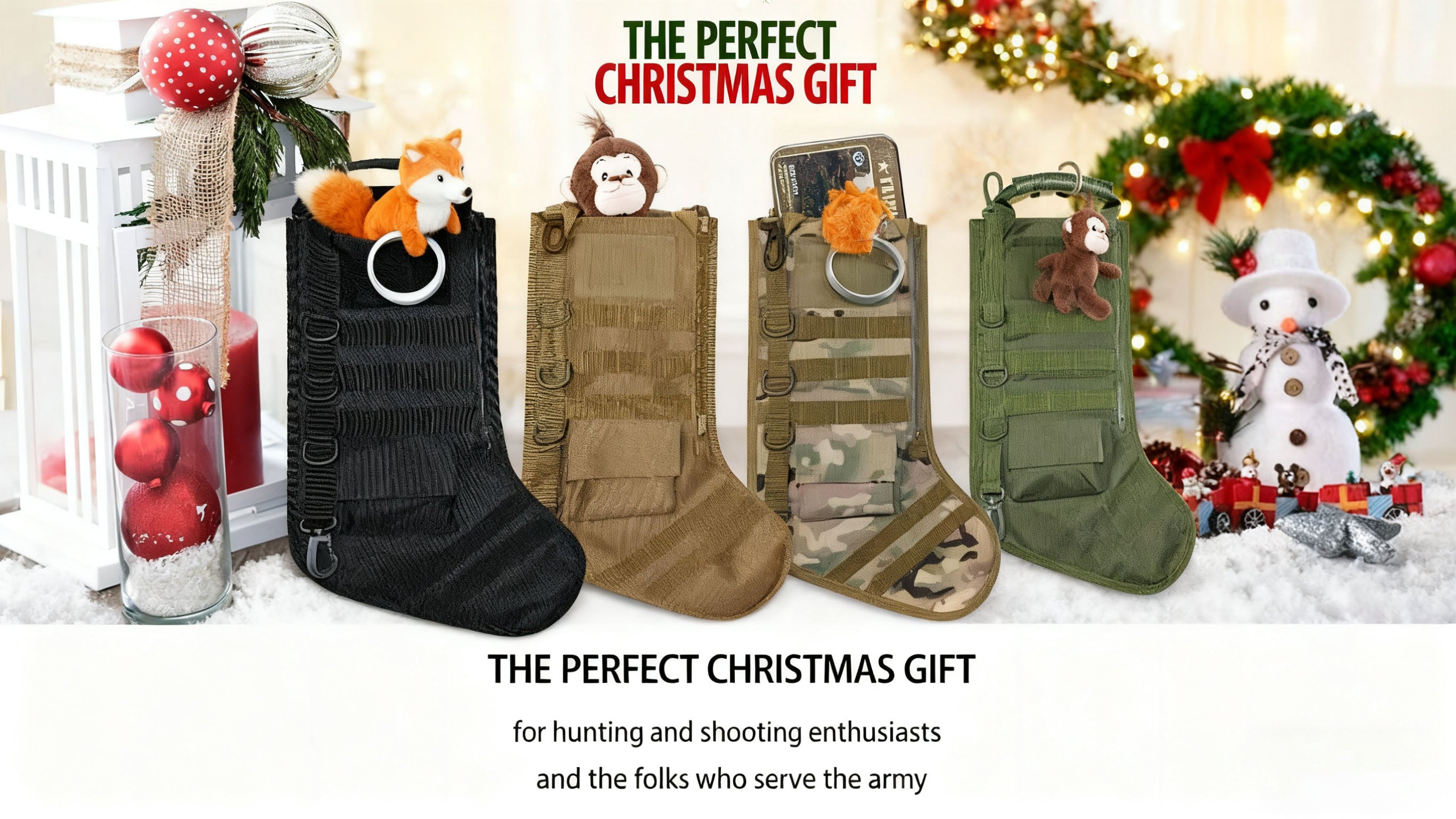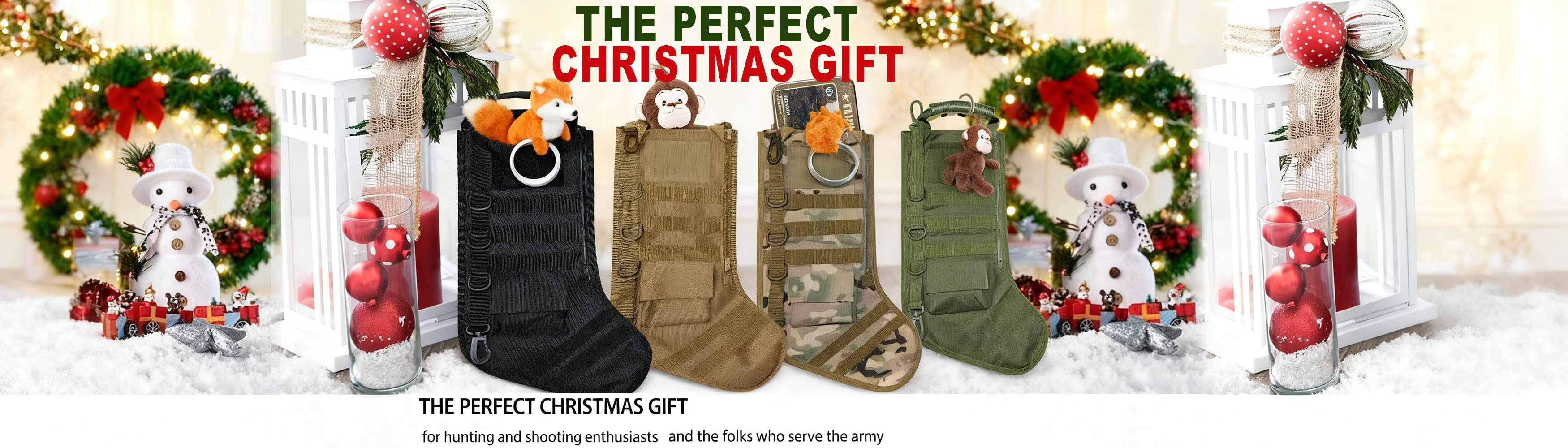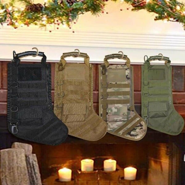 Our tactical Christmas stockings are designed to create a good atmosphere for military fans. Seven colors are available. It's perfect for military, law enforcement, security or Outdoors kind of guys or gals and hunting and shooting enthusiasts.Have a Great Christmas with our tactical christmas stockings!