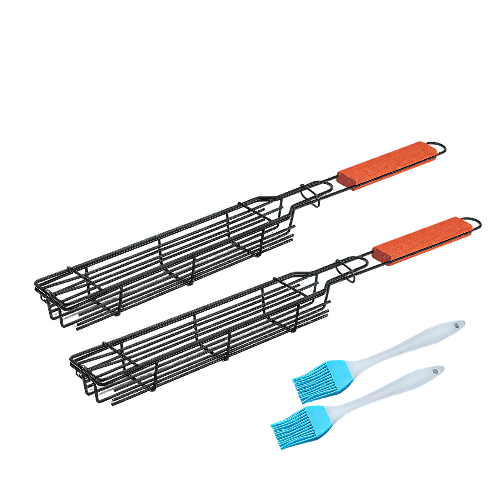 Combines a sturdy food - holding cage and a red silicone brush. Ideal for camping/ backyard BBQsāno slips, easy seasoning, ready for any grill!