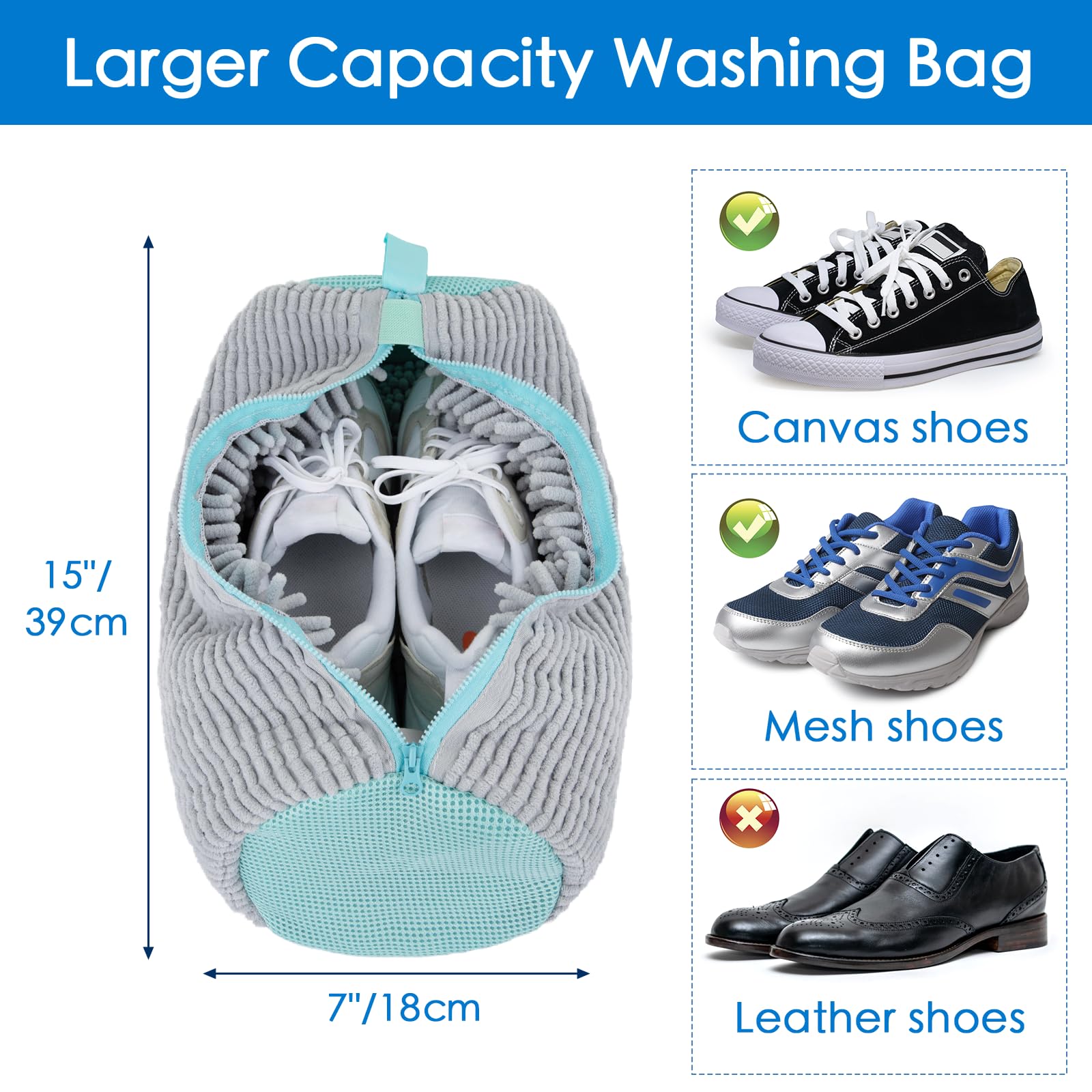 This shoe washing bag is designed for washing shoes and is suitable for machine washing and drying operations, so you don't have to spend time scrubbing your shoes by hand and can spend more time on other activities.