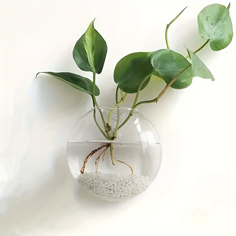 This glass oblate spherical plant container wall-mounted clear vase is suitable for use in various scenarios such as bathrooms, living rooms, indoor gardens and balconies.