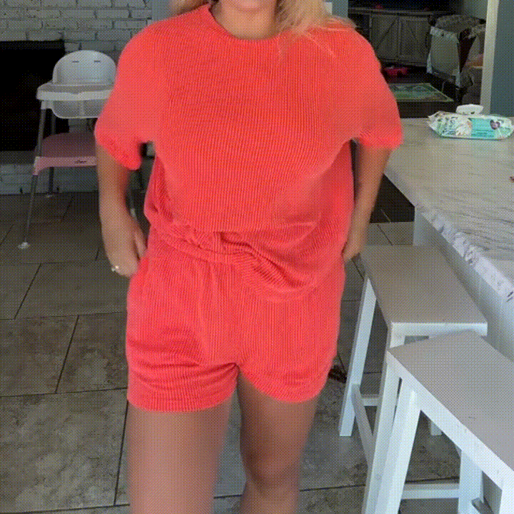Embrace effortless style with this summer set's perfect length and high-quality lightweight fabric. The soft, stretchy, and breathable material ensures a comfortable experience all day long. The elastic waistband adds extra comfort and flexibility.
